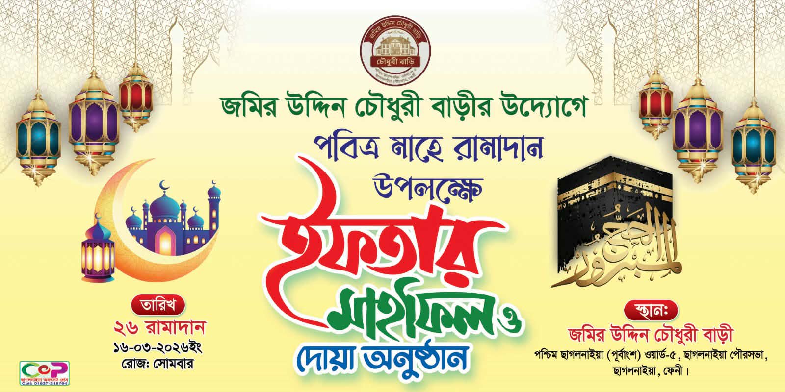 ছাগলনাইয়ায় জমির উদ্দিন চৌধুরী বাড়ির উদ্যোগে ইফতার ও দোয়া মাহফিল অনুষ্ঠিত
