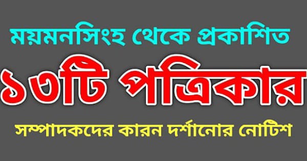 নোটিশপ্রাপ্ত পত্রিকাগুলো হলো মো শামসুল আলম খান সম্পাদিত দৈনিক আজকের ময়মনসিংহ, এফ এম এ ছালাম সম্পাদিত দৈনিক দেশের খবর, এন বি এম ইব্রাহীম খলিল রহিম সম্পাদিত দৈনিক বিশ্বের মুখপত্র, মরহুম আব্দুর রাজ্জাক তালুকদার সম্পাদিত দৈনিক ঈশিকা, নাসির উদ্দিন আহমেদ সম্পাদিত দৈনিক অদম্য বাংলা, মো. আফসর উদ্দিন সম্পাদিত দৈনিক সবুজ, আ ন ম ফারুক সম্পাদিত দৈনিক আলোকিত ময়মনসিংহ ও দৈনিক দিগন্ত বাংলা, শেখ মেহেদী হাসান নাদিম প্রকাশিত দৈনিক জাহান, ওমর ফারুক সম্পাদিত দৈনিক কৃষাণের দেশ, এম এ মতিন সম্পাদিত দৈনিক নিউ টাইমস, ফরিদা ইয়াসমীন রত্না সম্পাদিত হ্রদয়ে বাংলাদেশ, অ্যাডভোকেট বিকাশ রায় সম্পাদিত সাপ্তাহিক পরিধি।